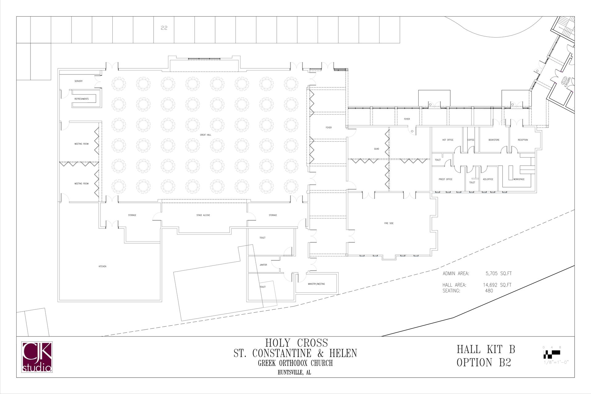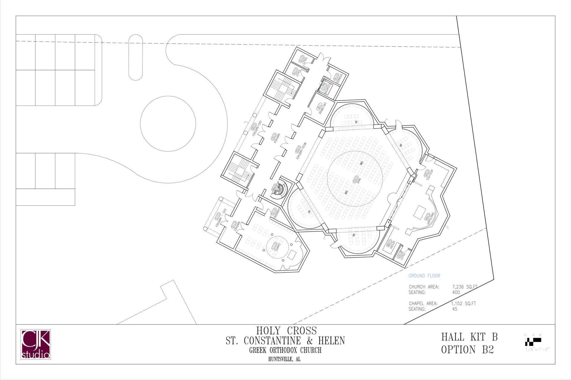 - Build a central plan church temple with a hexagonal floor plan (HCCH Option B2)–nominally 350 seats on the floor and a loft for another 100 seats.